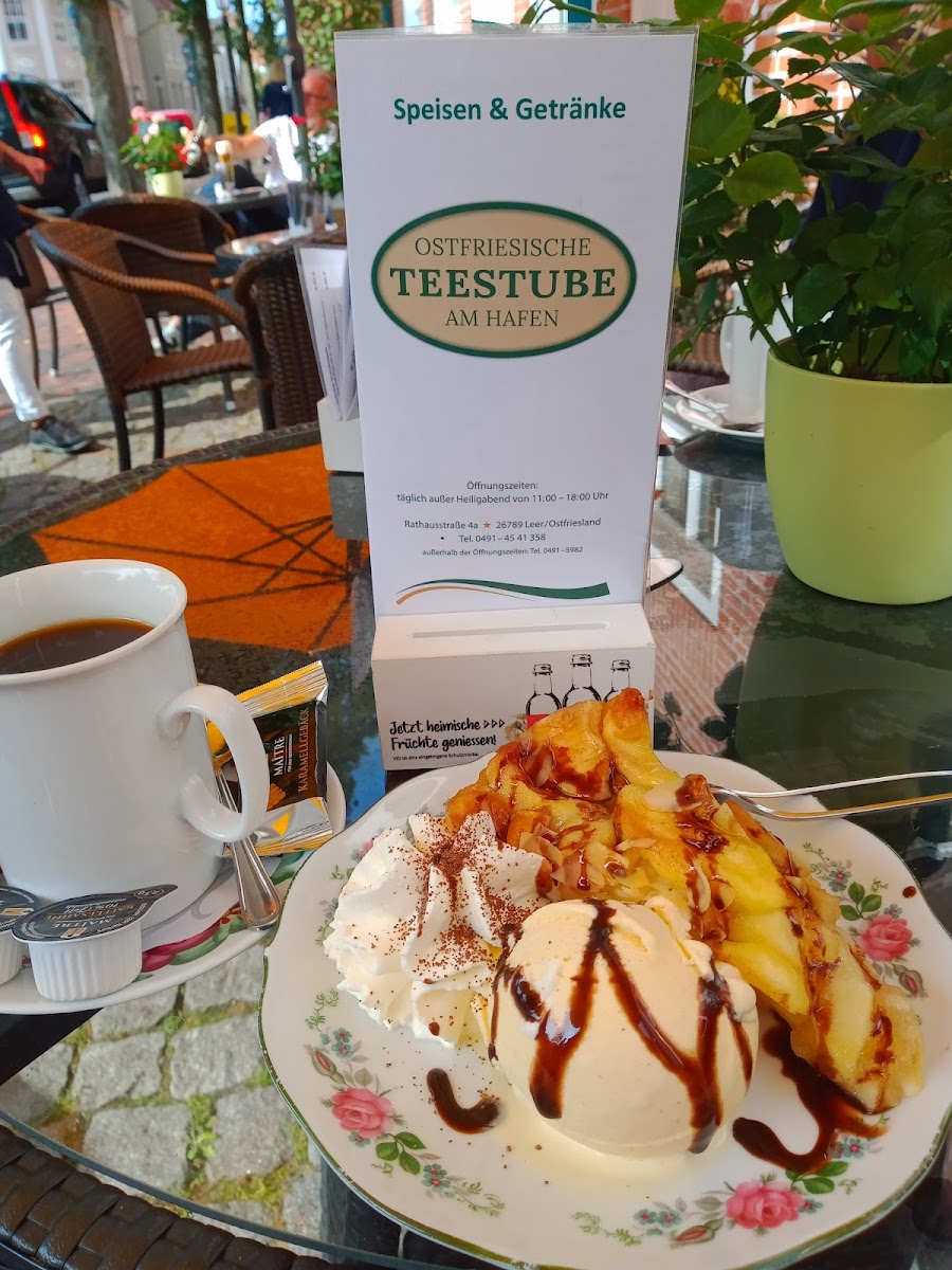 This tea room is best suited for anyone interested in experiencing an authentic tea time ritual. The preparation of Ostfriesen Tee—with its characteristic rock sugar (Kluntje) and cream—is more than just a drink here; it's a gentle ceremony that adds to the charm. The menu highlights local favorites such as Apfelkuchen with ice cream and cream, the layered Ostfriesentorte, and the often-favored Milchreistorte, making it a great spot for those who appreciate traditional German cakes alongside their tea.