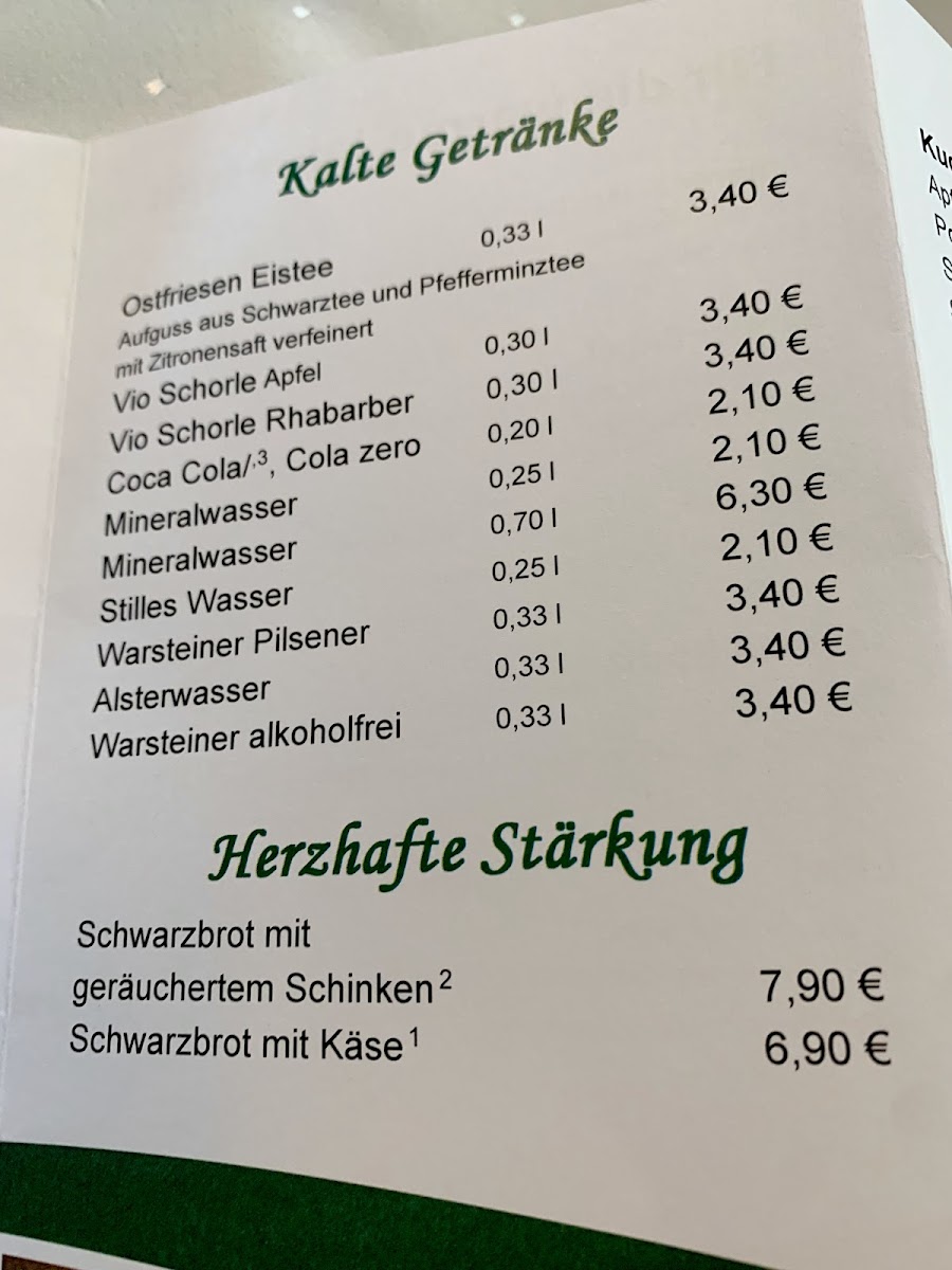 - Cakes and Tarts: A variety of local specialties such as Apfelkuchen, Ostfriesentorte, Milchreistorte, Quarktorte, Himbeertorte, Käsekuchen, and Herrentorte.